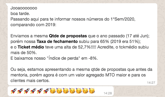 Se fizer isso vai ter resultados como do Leandro e a Bruna, escritório de Mogi da Cruzes/ SP, que aumentaram sua taxa de fechamento e ao mesmo tempo aumentaram em mais de 50% seu ticket médio. Ou seja, um crescimento exponencial, com clientes melhores e que realmente valorizam o arquiteto.
