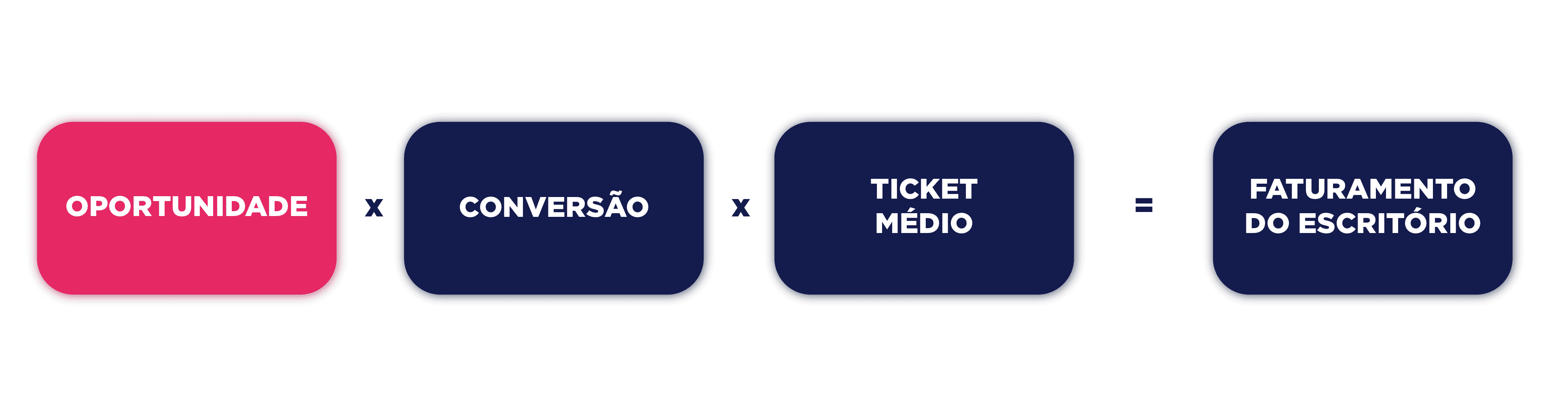 Bom, entendido esses 3 pilares, quando nós multiplicamos cada um deles nós temos o faturamento do escritório.