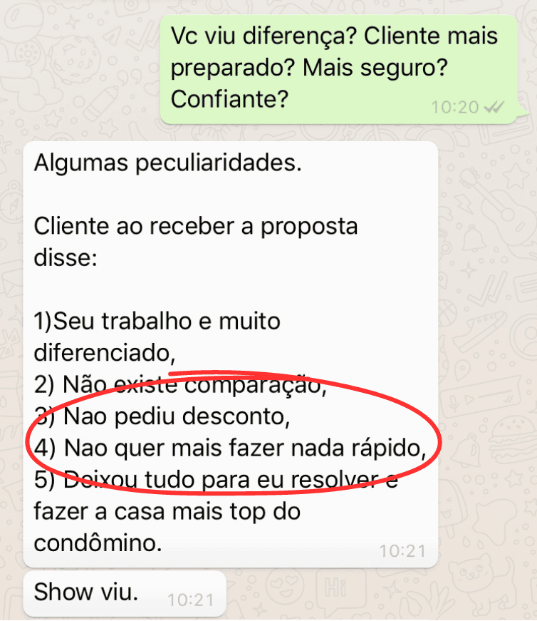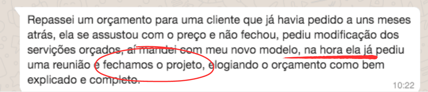 Se fizer isso vai ter resultados como do Leandro e a Bruna, escritório de Mogi da Cruzes/ SP, que aumentaram sua taxa de fechamento e ao mesmo tempo aumentaram em mais de 50% seu ticket médio. Ou seja, um crescimento exponencial, com clientes melhores e que realmente valorizam o arquiteto.